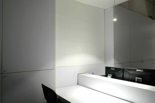 The HEIST project consisted of transforming an industrial loft space in the Mission District into a video production studio and office. The clients wanted to maintain the open layout as much as possible, while also incorporating sound-isolated editing rooms and a conference room. Oblique City divided the space lengthwise into two parts--one side made up the editing rooms, conference room, corner green-screen, and storage, while the other side consisted of the reception, open work areas, and kitchen. The center space was left for the lounge area and group activities area. Insulated glass walls allowed the editing rooms to remain visually connected to the main space, while still providing sufficient sound isolation.